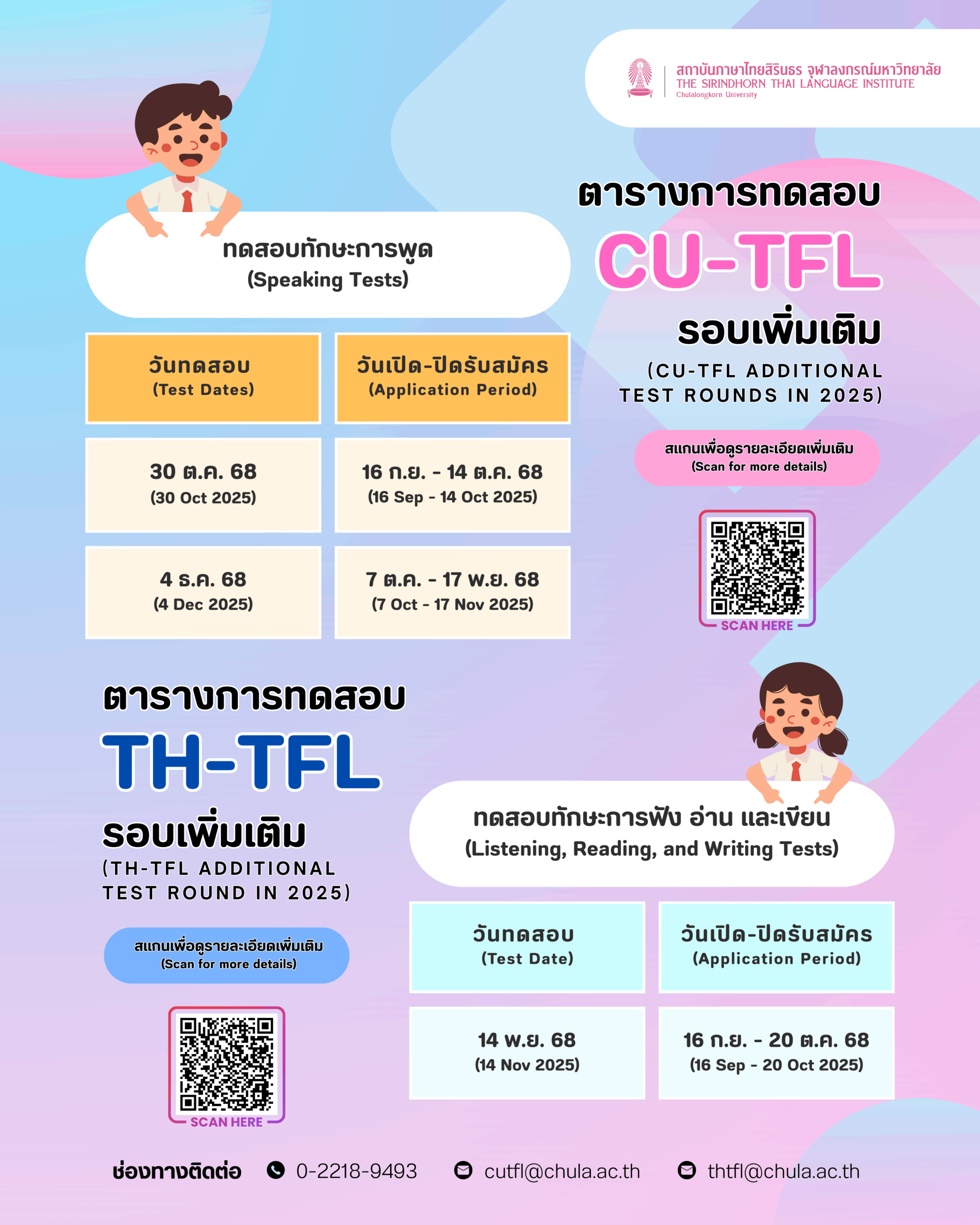 ลงทะเบียนทดสอบ TH-TFL (ทักษะการฟัง, การอ่าน และการเขียน)