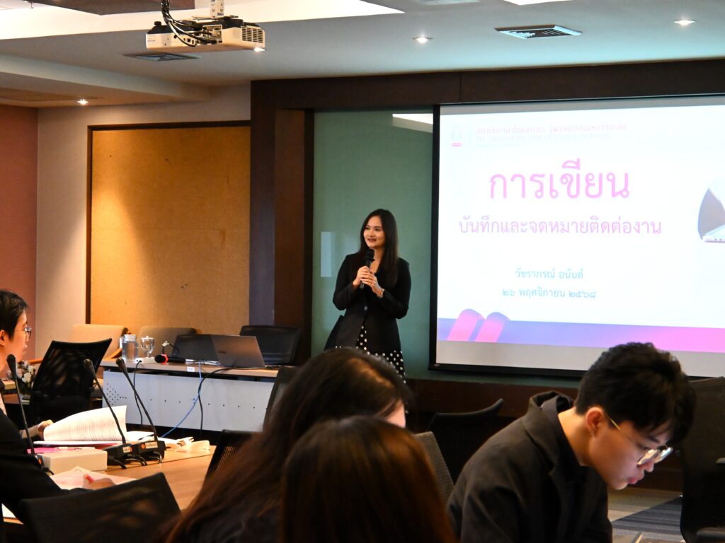 สถาบันภาษาไทยสิรินธรได้จัดอบรมความรู้และทักษะการใช้ภาษาไทยในหลักสูตร “เทคนิคการเขียนบันทึกและจัดทำรายงาน (รุ่นที่ 2)” ให้แก่บุคลากรของธนาคารแห่งประเทศไทย เมื่อวันที่ 26 พฤศจิกายน 2568 ณ ธนาคารแห่งประเทศไทย อาคาร 7 ชั้น 7 ห้อง 771 โดยมีอาจารย์วัชราภรณ์ อนันต์ เป็นวิทยากร