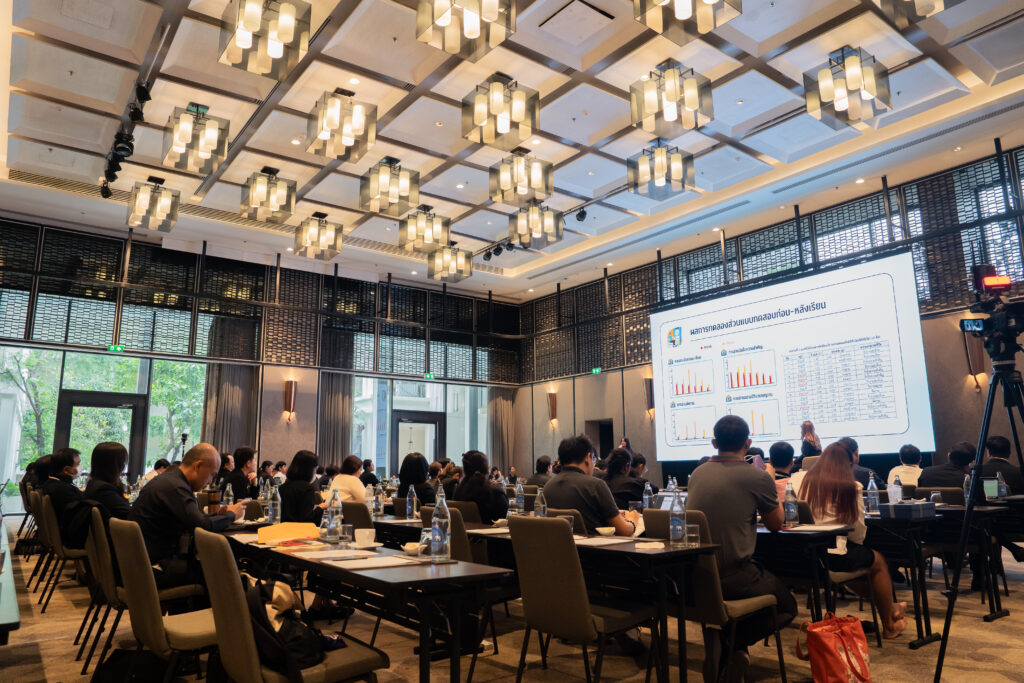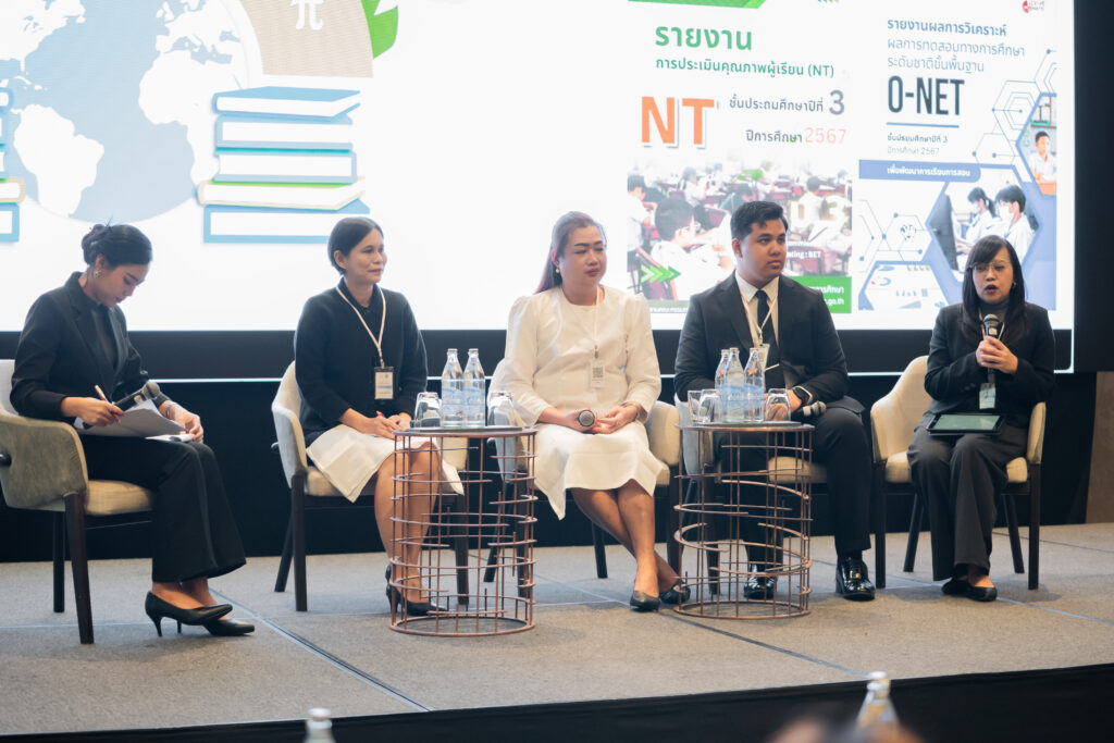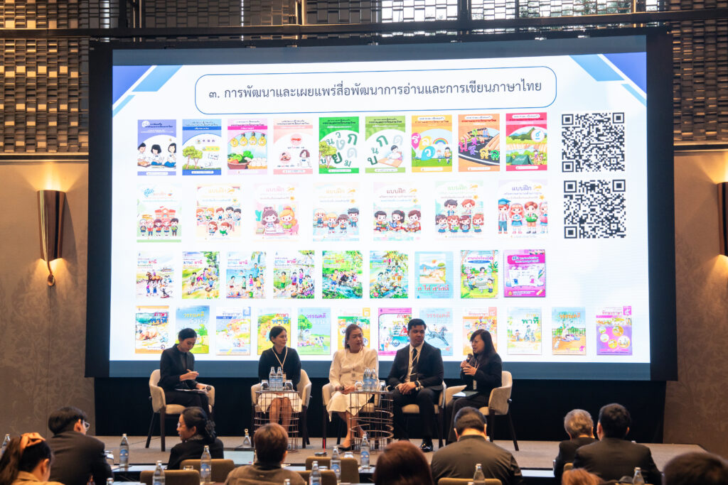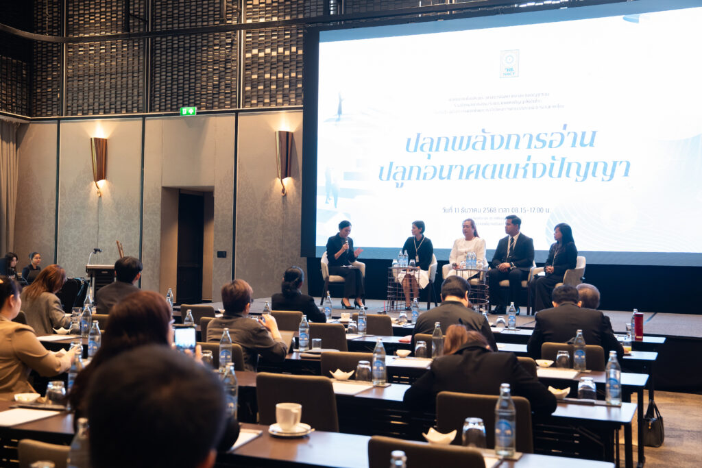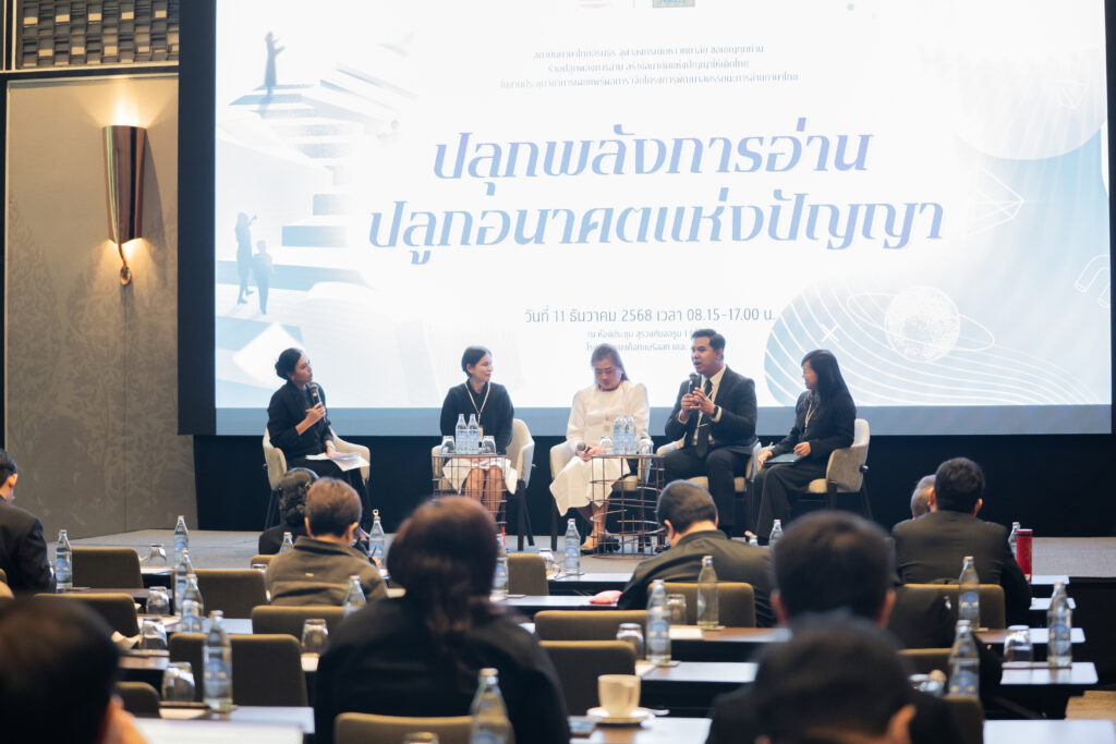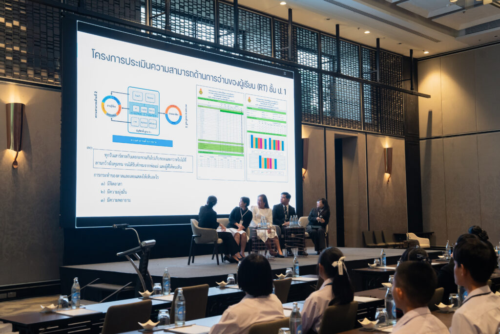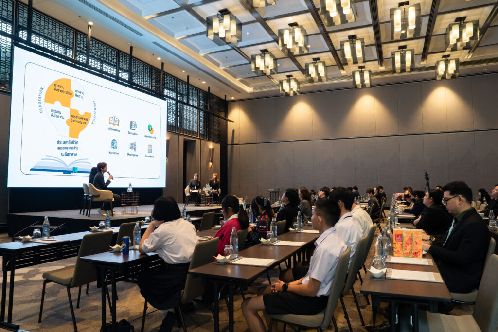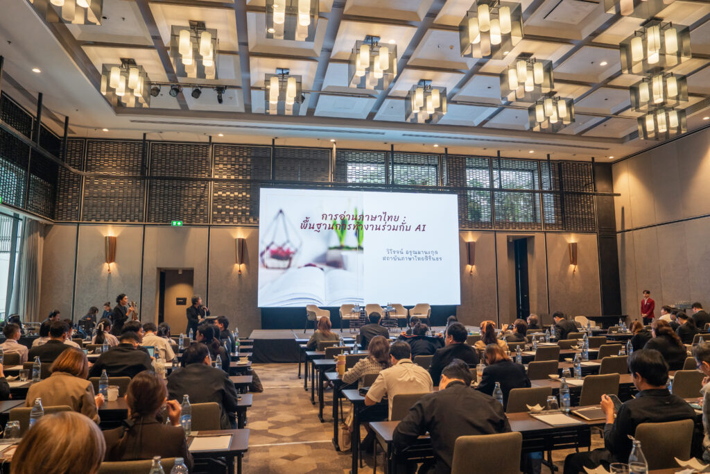 นอกจากนี้ ยังมีการเสวนาในหัวข้อ “AI กับการพัฒนาสมรรถนะการอ่านภาษาไทย” ซึ่งมุ่งเน้นบทบาทของปัญญาประดิษฐ์ในการสร้างและปรับปรุงบทอ่าน รวมถึงการสร้างแบบทดสอบสมรรถนะการอ่าน โดยคณาจารย์และนักวิจัยผู้เชี่ยวชาญ และในช่วงแลกเปลี่ยนความคิดเห็นยังมีนักเรียนจากโรงเรียนสวนกุหลาบวิทยาลัย ธนบุรี โรงเรียนแจงร้อนวิทยา และผู้เข้าร่วมงานร่วมแสดงความคิดเห็นเกี่ยวกับประโยชน์ที่ได้รับจากการวิจัยอีกด้วย