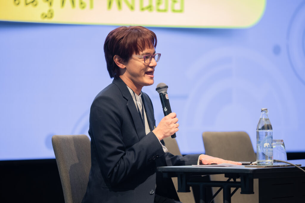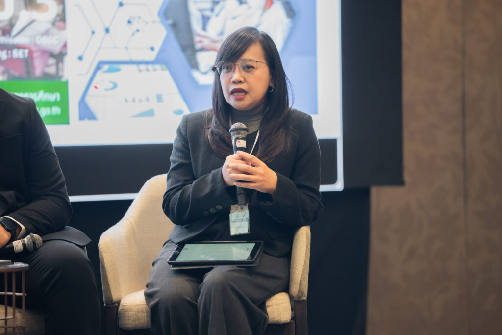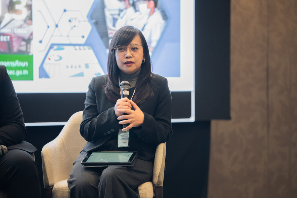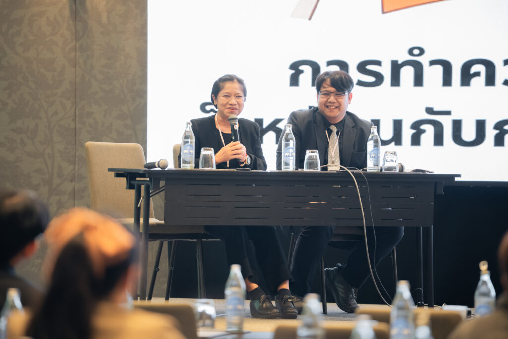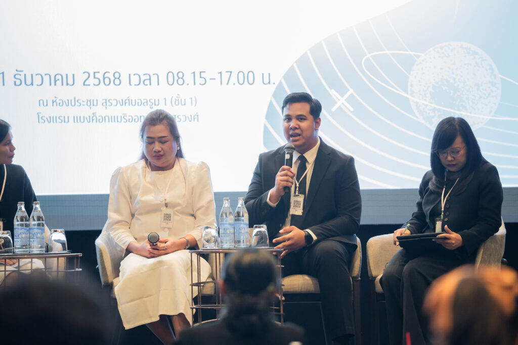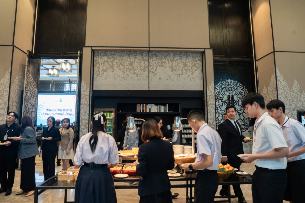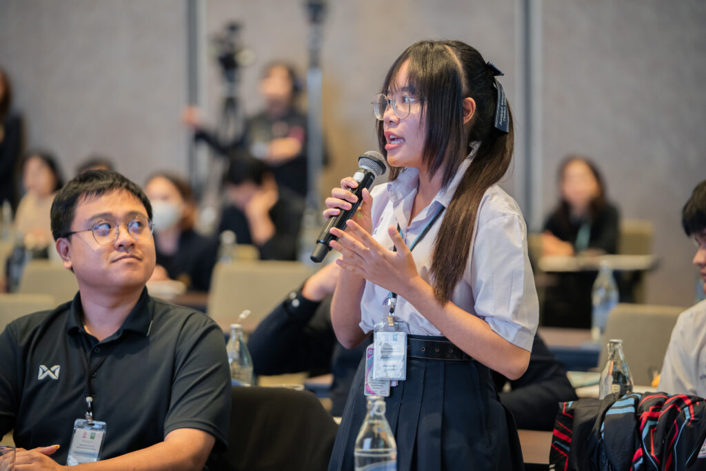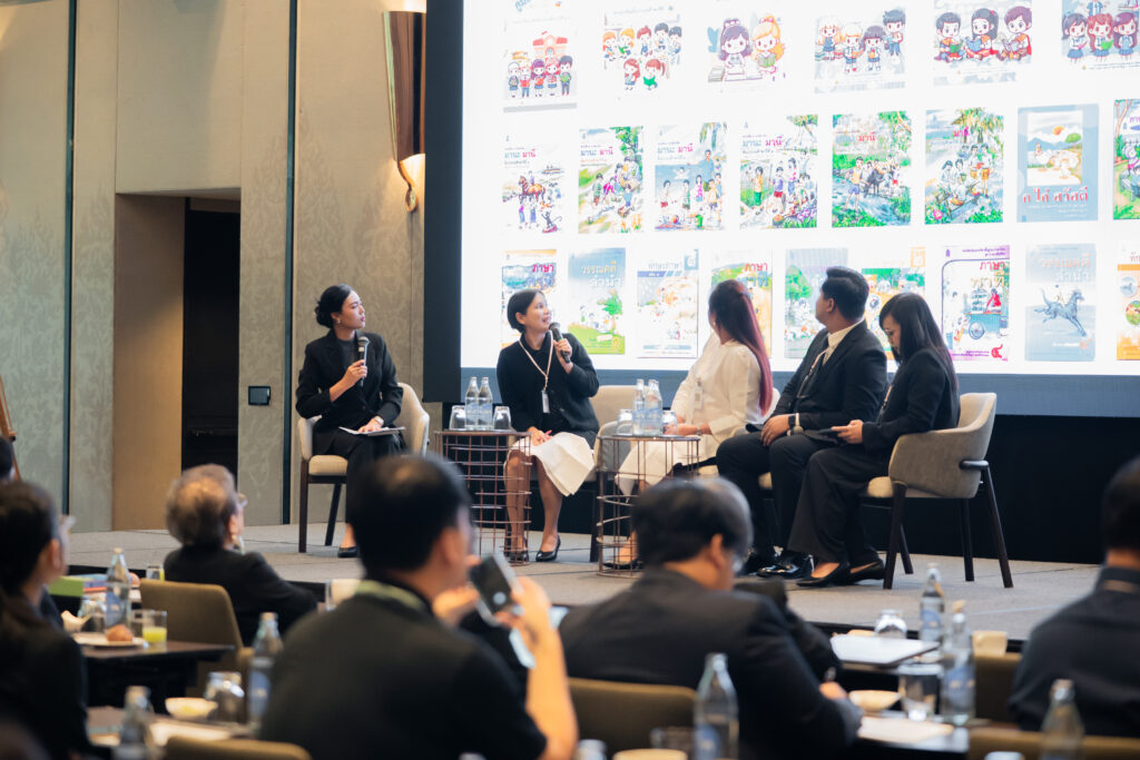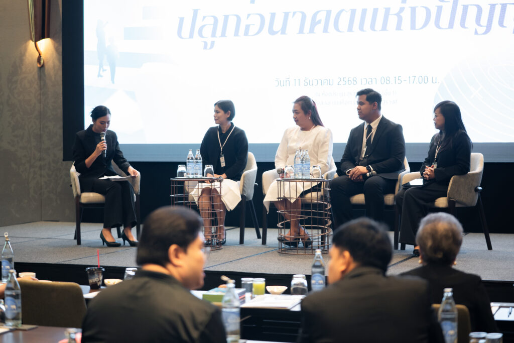 นอกจากนี้ ยังมีการเสวนาในหัวข้อ “AI กับการพัฒนาสมรรถนะการอ่านภาษาไทย” ซึ่งมุ่งเน้นบทบาทของปัญญาประดิษฐ์ในการสร้างและปรับปรุงบทอ่าน รวมถึงการสร้างแบบทดสอบสมรรถนะการอ่าน โดยคณาจารย์และนักวิจัยผู้เชี่ยวชาญ และในช่วงแลกเปลี่ยนความคิดเห็นยังมีนักเรียนจากโรงเรียนสวนกุหลาบวิทยาลัย ธนบุรี โรงเรียนแจงร้อนวิทยา และผู้เข้าร่วมงานร่วมแสดงความคิดเห็นเกี่ยวกับประโยชน์ที่ได้รับจากการวิจัยอีกด้วย