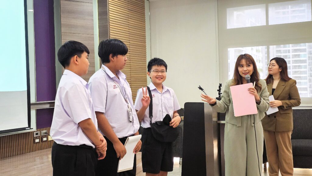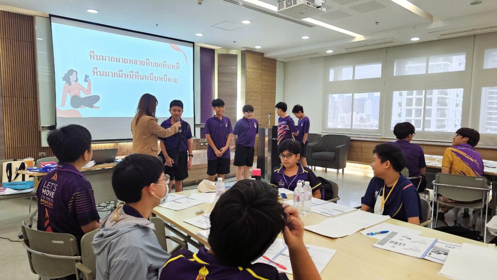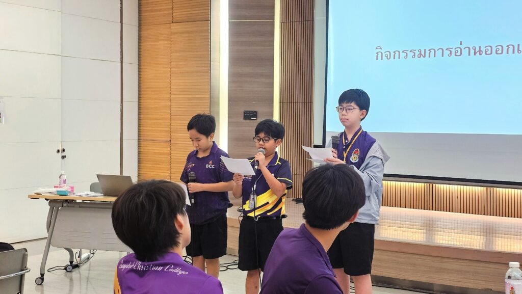 สถาบันภาษาไทยสิรินธรได้จัดอบรมความรู้และทักษะการใช้ภาษาไทยในหลักสูตร “การพัฒนาบุคลิกภาพและการสื่อสารในยุคนวัตกรรม” ให้แก่นักเรียนระดับมัธยมศึกษาปีที่ 1-3 โรงเรียนกรุงเทพคริสเตียนวิทยาลัย ณ ห้องประชุม 10 อาคาร จอห์น เอ. เอกิ้น โรงเรียนกรุงเทพคริสเตียนวิทยาลัย โดยมีอาจารย์โศภิษฐา ไชยถาวร และอาจารย์ปาณิสรา เลาหล่าย เป็นวิทยากร