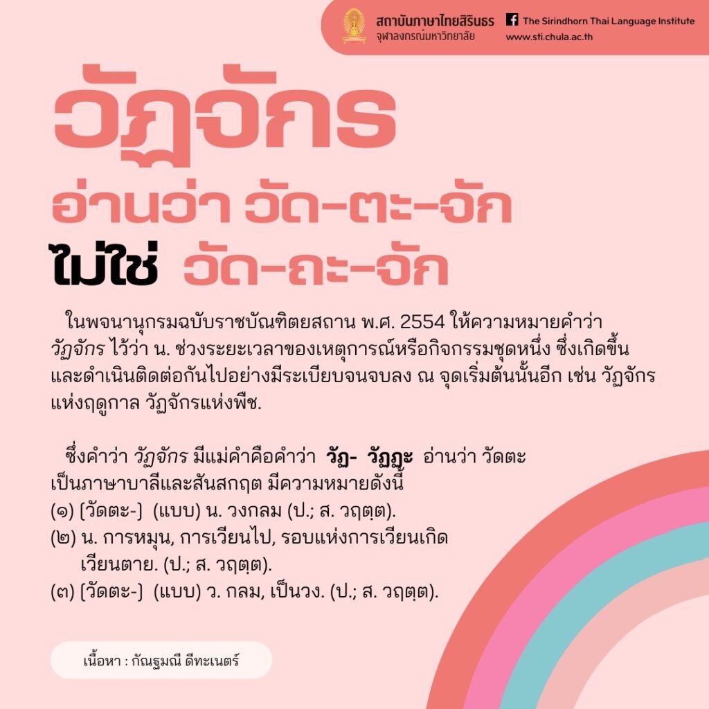 วัฏจักร อ่านว่า วัด-ตะ-จัก ไม่ใช่ วัด-ถะ-จัก