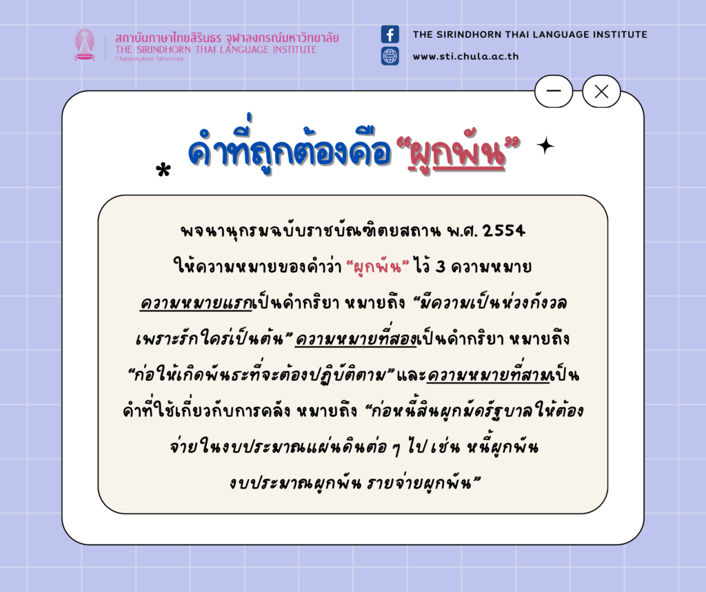 ขอเสนอเรื่อง “ผูกพัน” กับ “ผูกพันธ์” ใช้คำไหนกันแน่นะ?