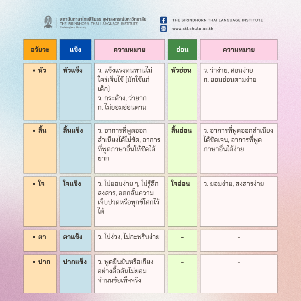ขอเสนอเรื่อง “อวัยวะ + แข็ง? อ่อน?”