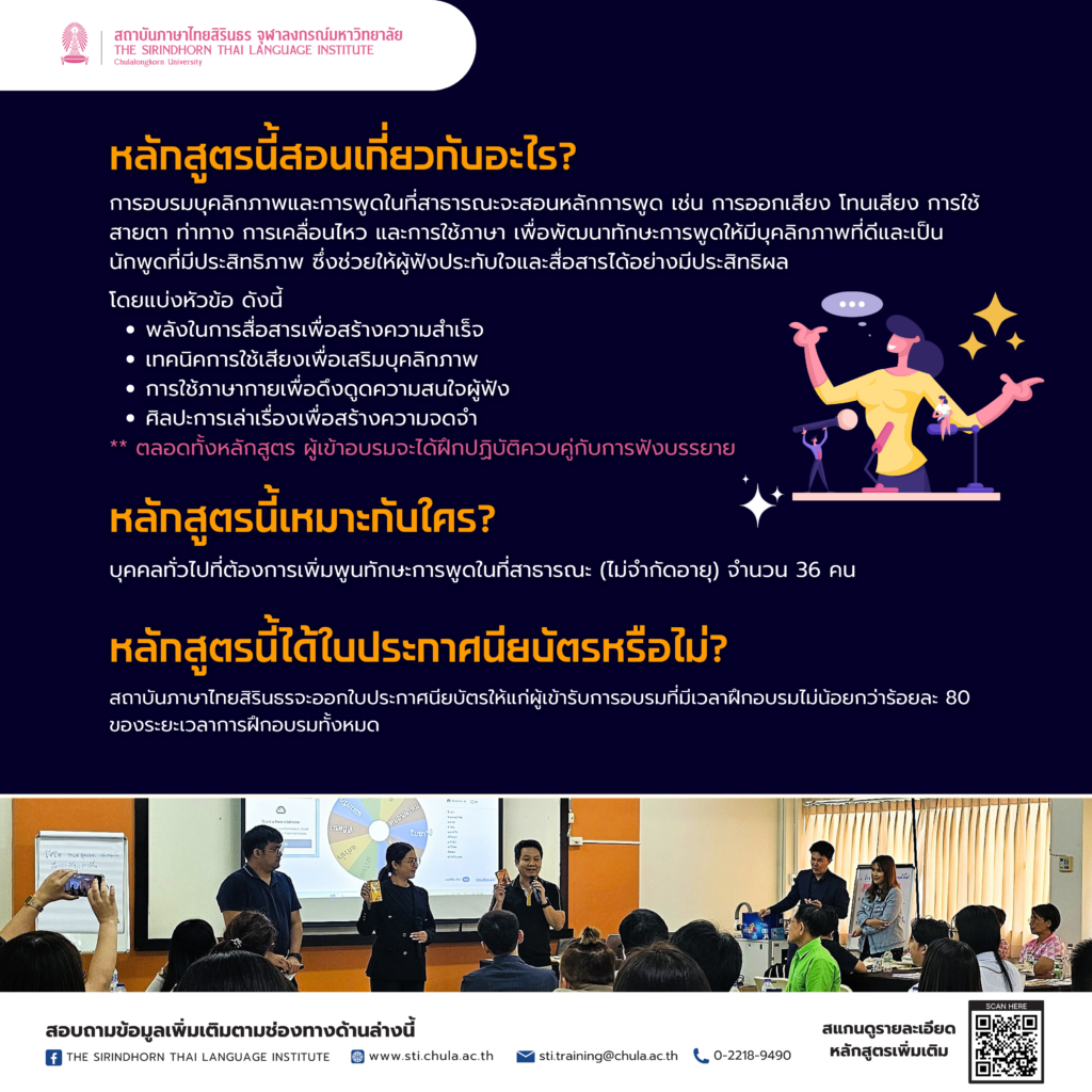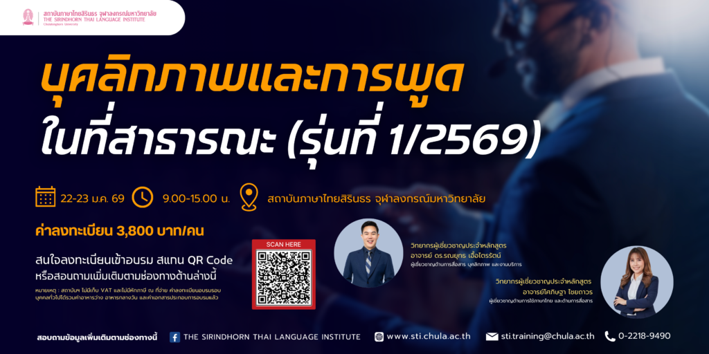 หลักสูตร “บุคลิกภาพและการพูดในที่สาธารณะ (รุ่นที่ 1/2569)”