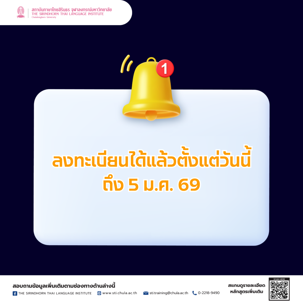 สถาบันภาษาไทยสิรินธรขอเชิญชวนผู้ที่สนใจลงทะเบียนสมัครอบรมเพื่อเพิ่มพูนความรู้และทักษะการใช้ภาษาไทย