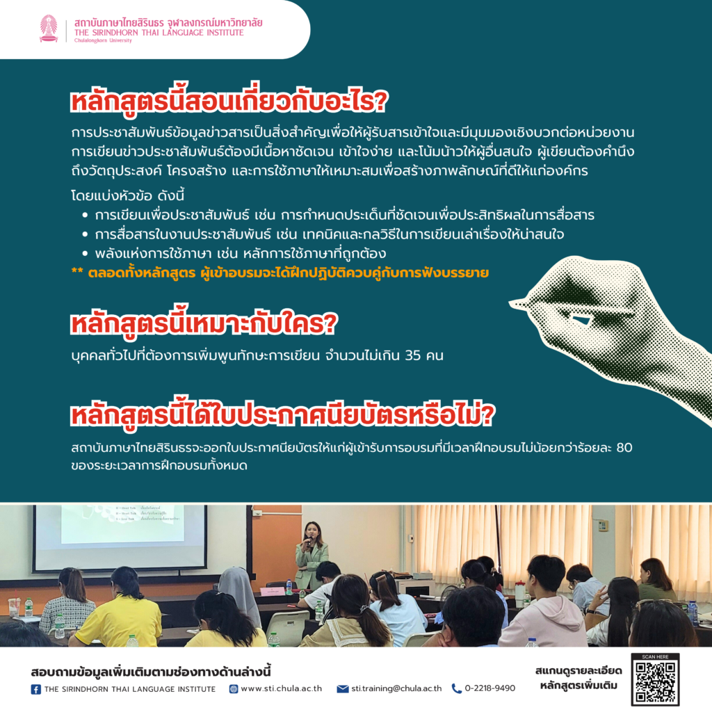 หลักสูตร “ทักษะการเขียนภาษาไทยเพื่อการประชาสัมพันธ์องค์กร”