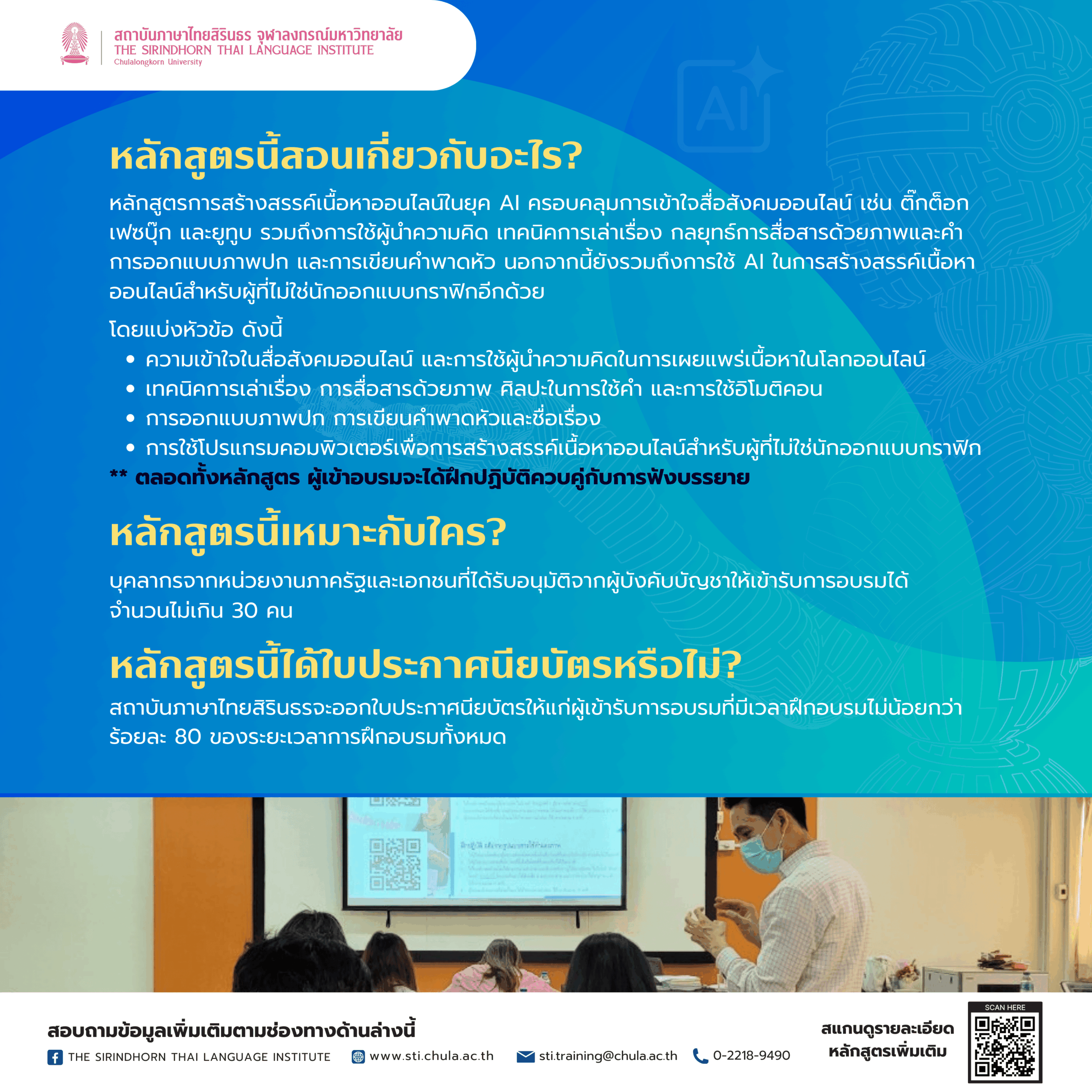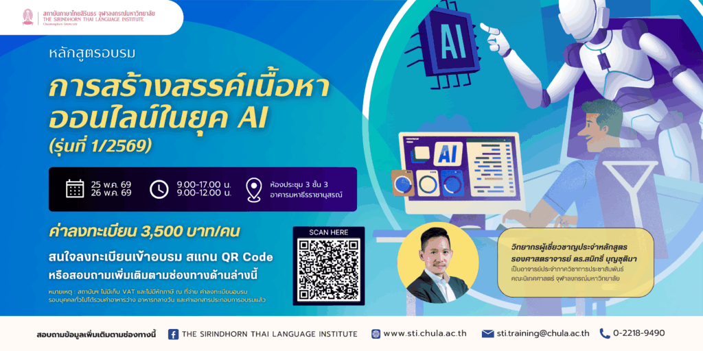 หลักสูตร “การสร้างสรรค์เนื้อหาออนไลน์ในยุค AI (รุ่นที่ 1/2569)”