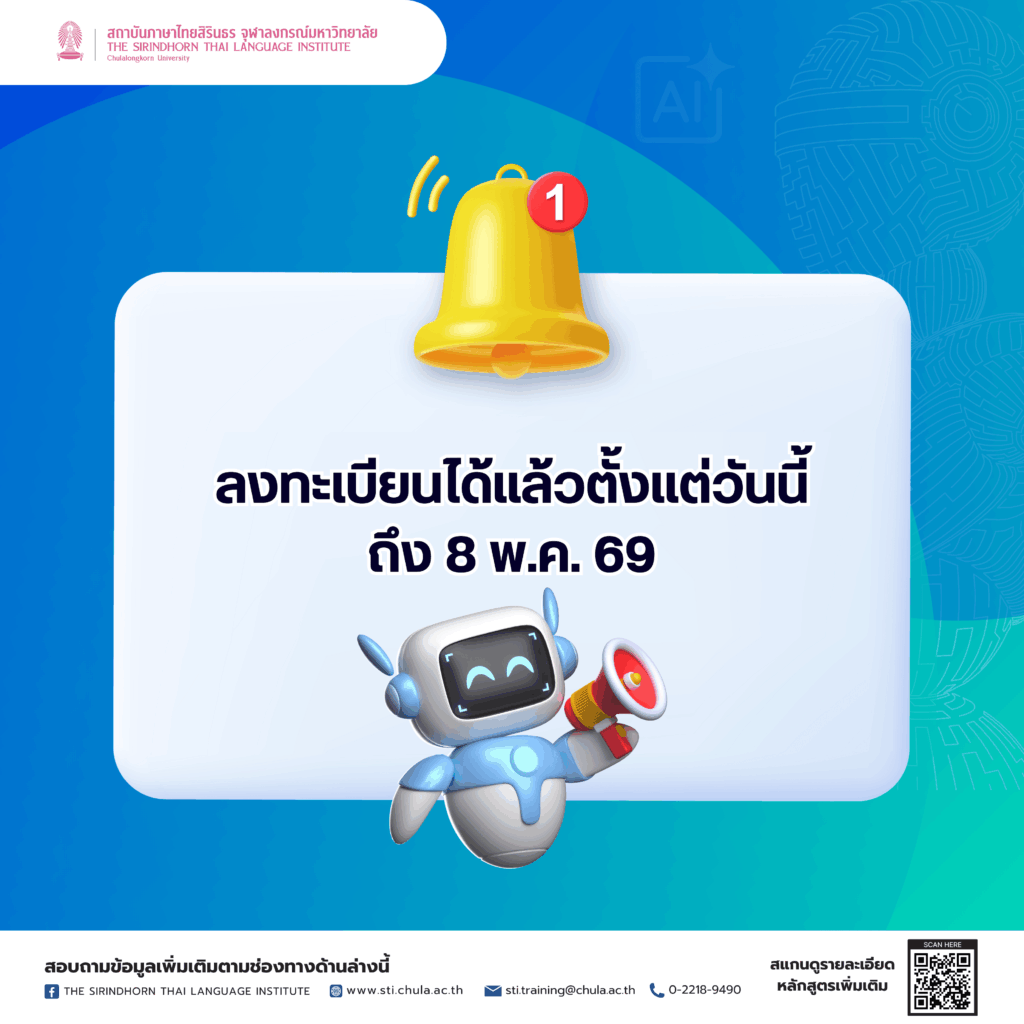 สถาบันภาษาไทยสิรินธรขอเชิญชวนผู้ที่สนใจลงทะเบียนสมัครอบรมเพื่อเพิ่มพูนความรู้และทักษะการใช้ภาษาไทย