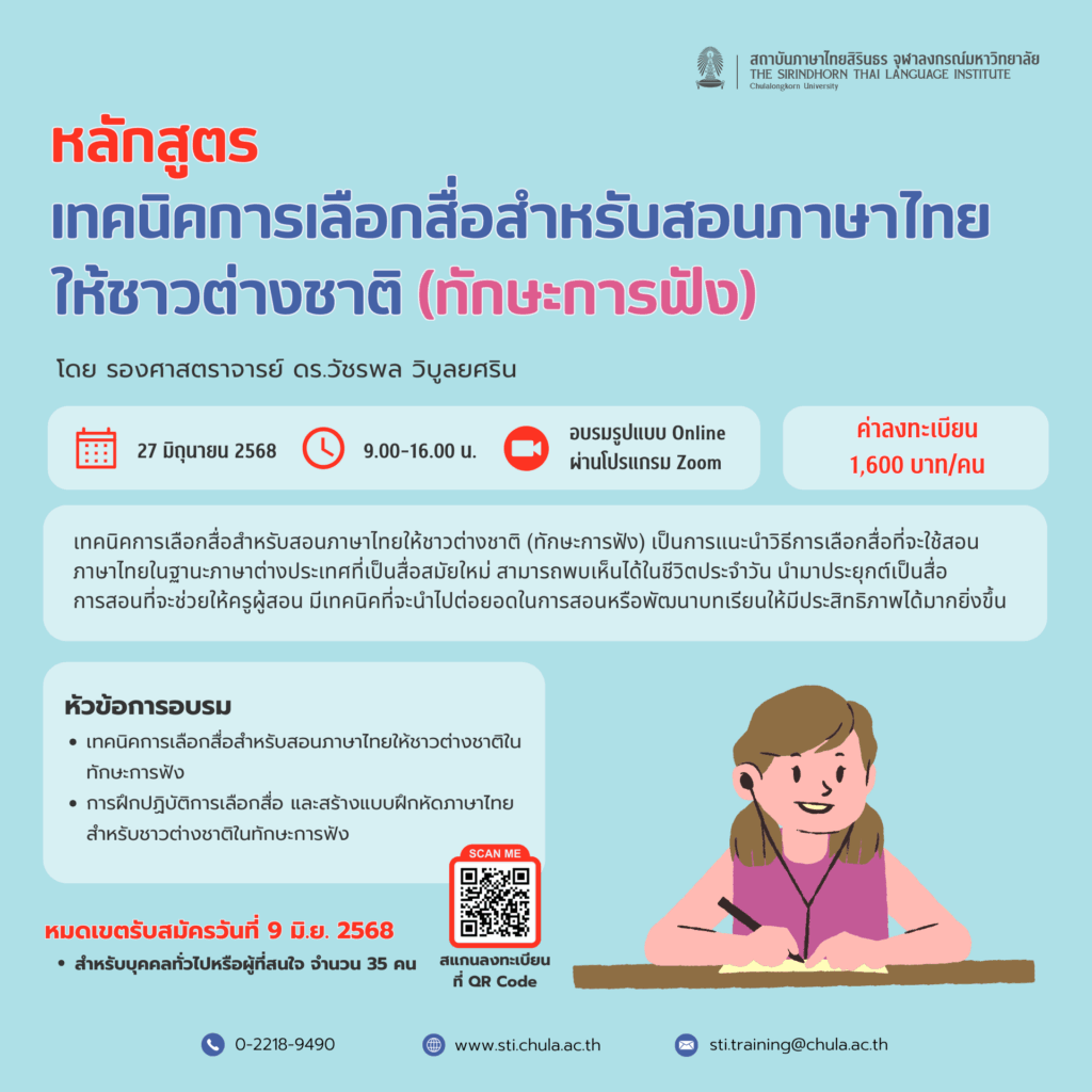 เทคนิคการเลือกสื่อสำหรับสอนภาษาไทยให้ชาวต่างชาติ (ทักษะการฟัง)