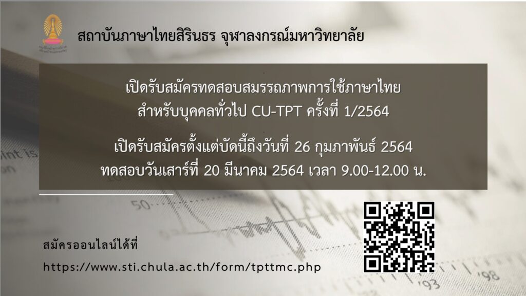 เปิดรับสมัครทดสอบสมรรถภาพการใช้ภาษาไทย สำหรับบุคคลทั่วไป CU-TPT ครั้งที่ 1/2564