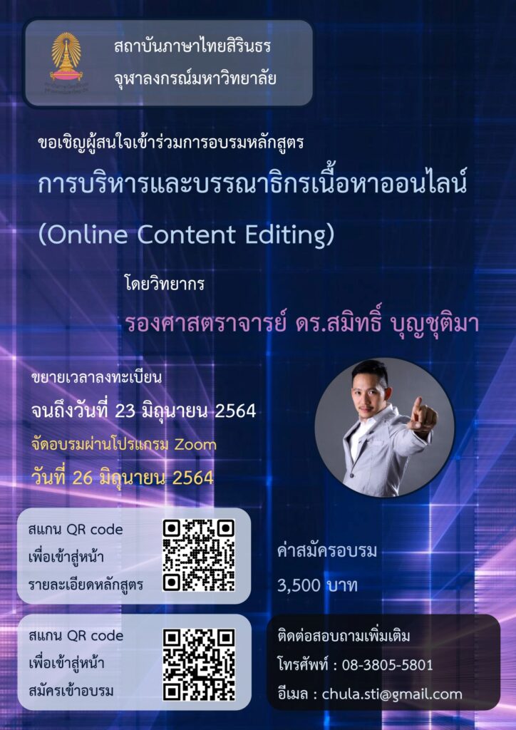 ขอเชิญผู้สนใจสมัครเข้าร่วมอบรมหลักสูตร “การบริหารและบรรณาธิกรเนื้อหาออนไลน์ (Online Content Editing)”