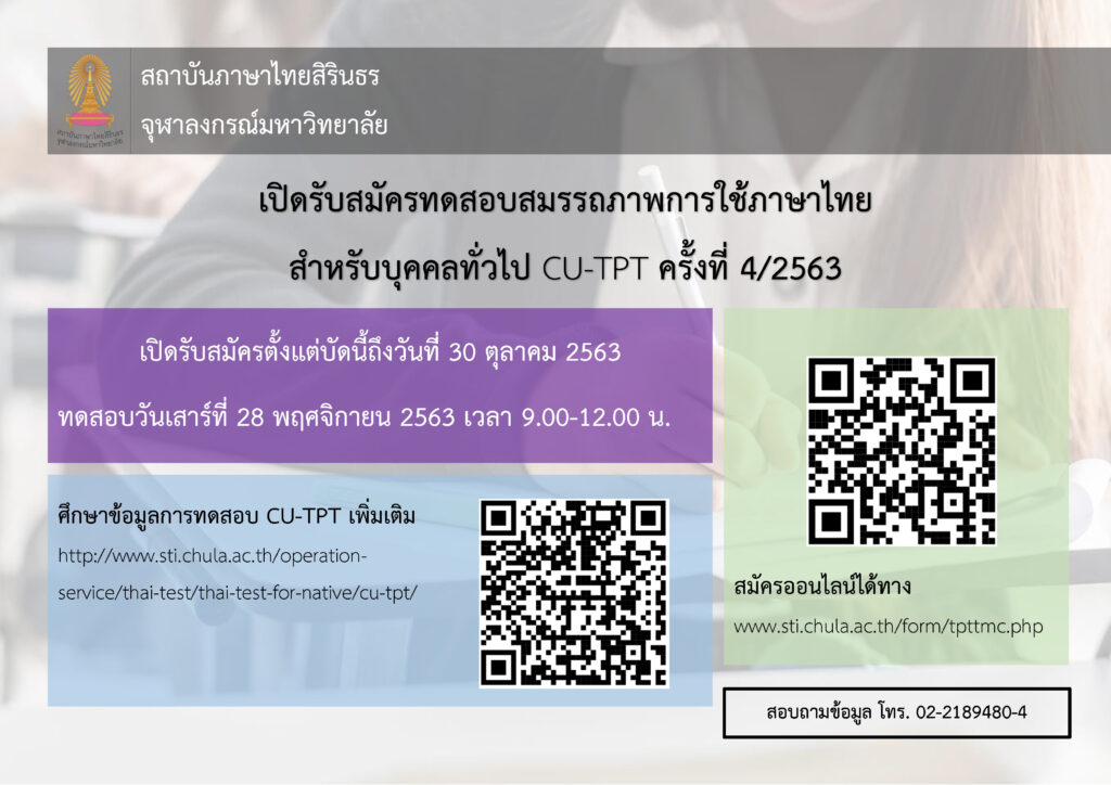 เปิดรับสมัครทดสอบสมรรถภาพการใช้ภาษาไทยสำหรับบุคคลทั่วไป CU-TPT ครั้งที่ 4/2563