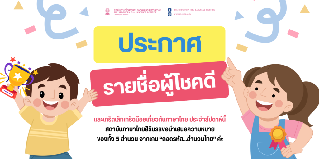 ประกาศรายชื่อผู้โชคดีที่ร่วมเล่นเกม “ถอดรหัส…สำนวนไทย”