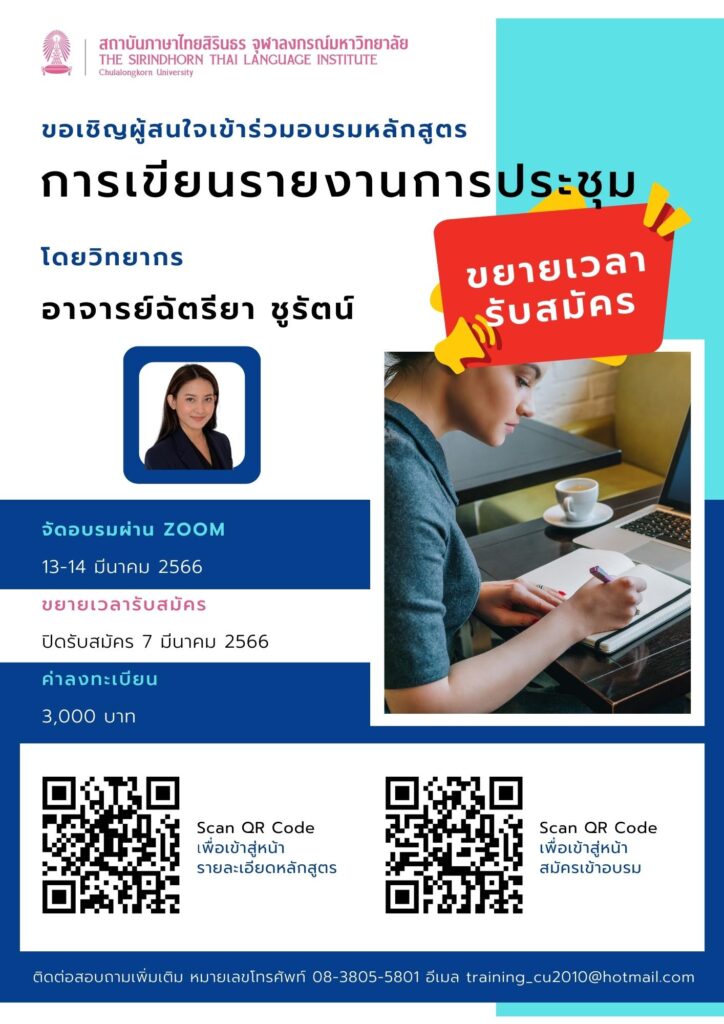 เปิดรับสมัครหลักสูตร “การเขียนรายงานการประชุม” ปี 2566 (ขยายเวลารับสมัคร)