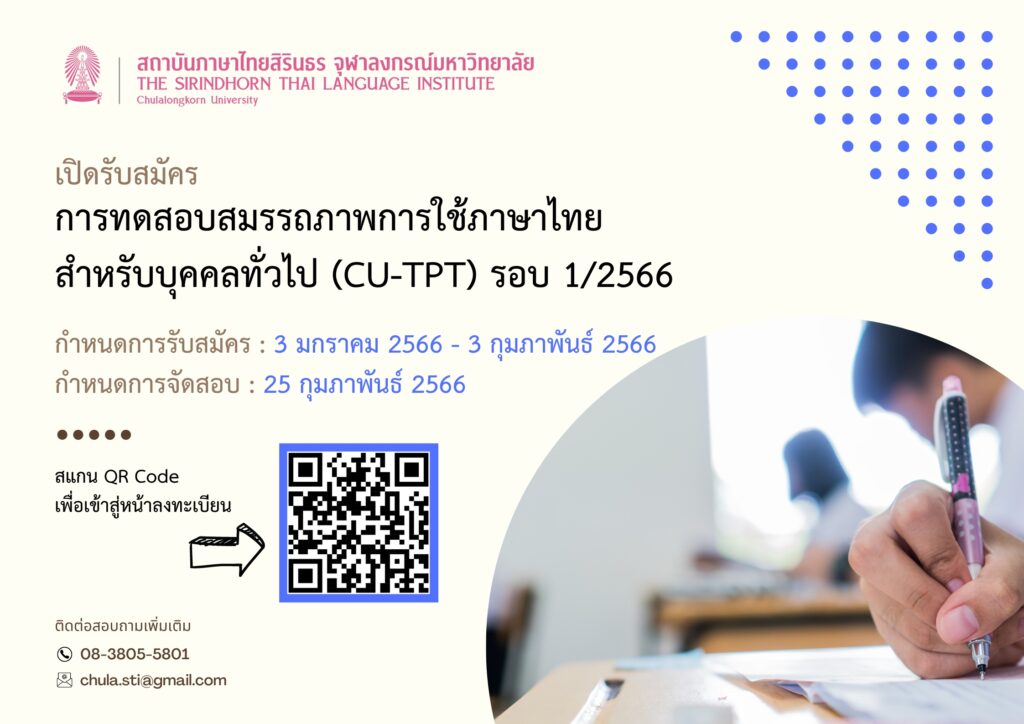 เปิดรับสมัครการทดสอบสมรรถภาพการใช้ภาษาไทยสำหรับบุคคลทั่วไป (CU-TPT) รอบ 1/2566