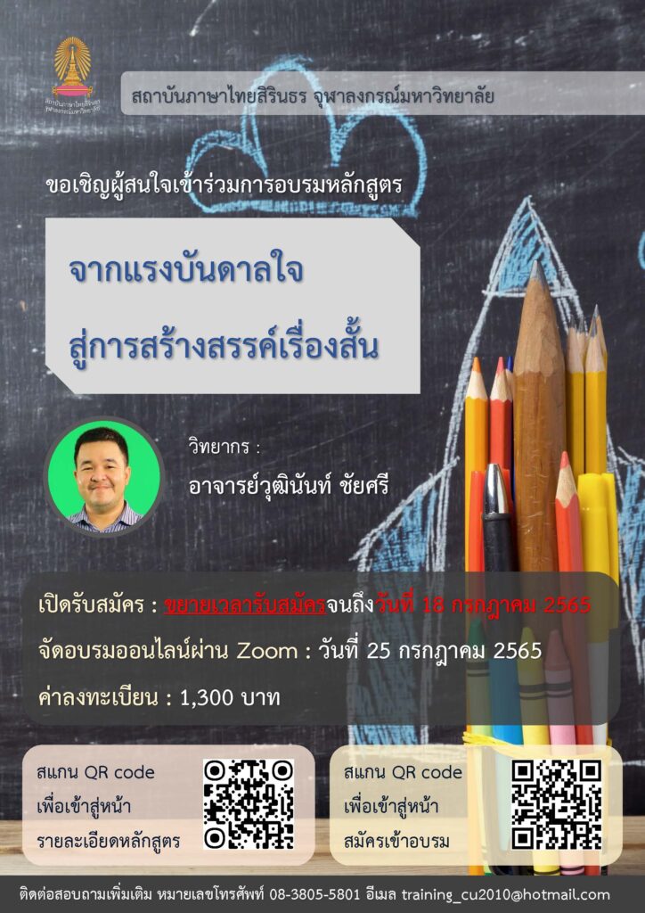 เปิดรับสมัครหลักสูตร “จากแรงบันดาลใจสู่การสร้างสรรค์เรื่องสั้น”