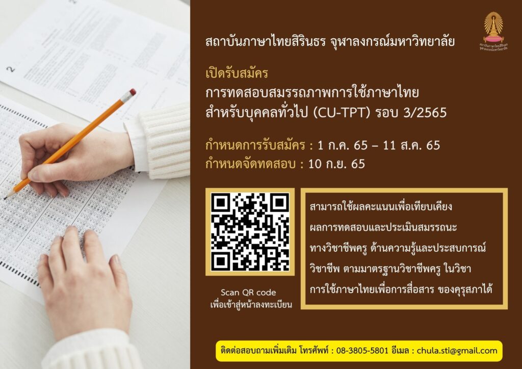 เปิดรับสมัครการทดสอบสมรรถภาพการใช้ภาษาไทยสำหรับบุคคลทั่วไป (CU-TPT) รอบ 3/2565