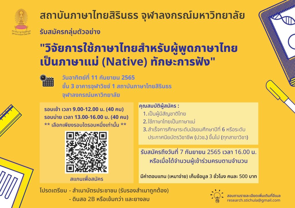 สถาบันภาษาไทยสิรินธร เปิดรับสมัครกลุ่มตัวอย่างเพื่อการทำวิจัยการใช้ภาษาไทย (สำหรับผู้พูดภาษาไทยเป็นภาษาแม่)